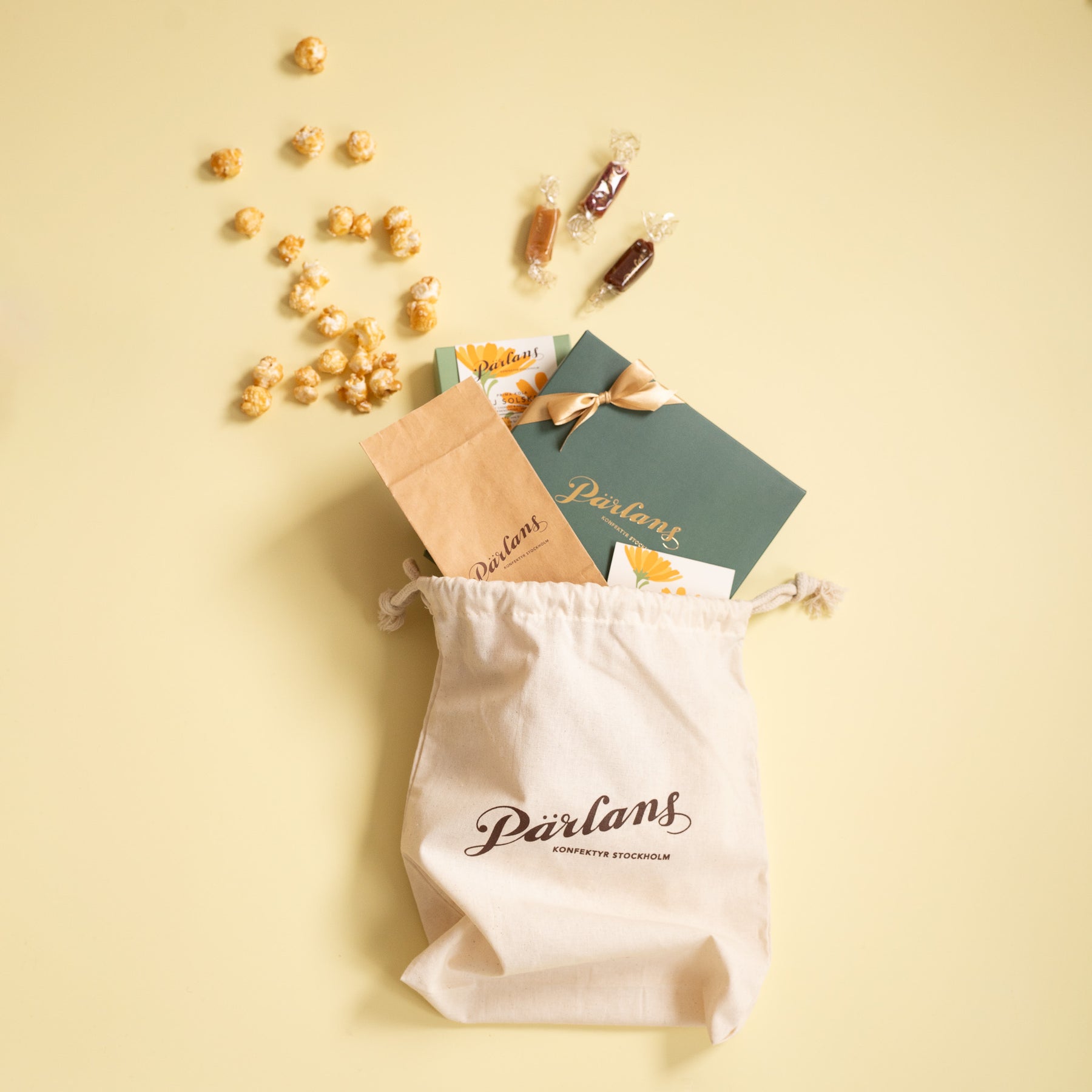 En mjuk dustbag att slå in godsakerna i - såklart perfekt att återanvända om och om igen till vad du önskar. Gjord i ekologisk bomull, med dragsko och brun logga - det är de små detaljerna som gör det!