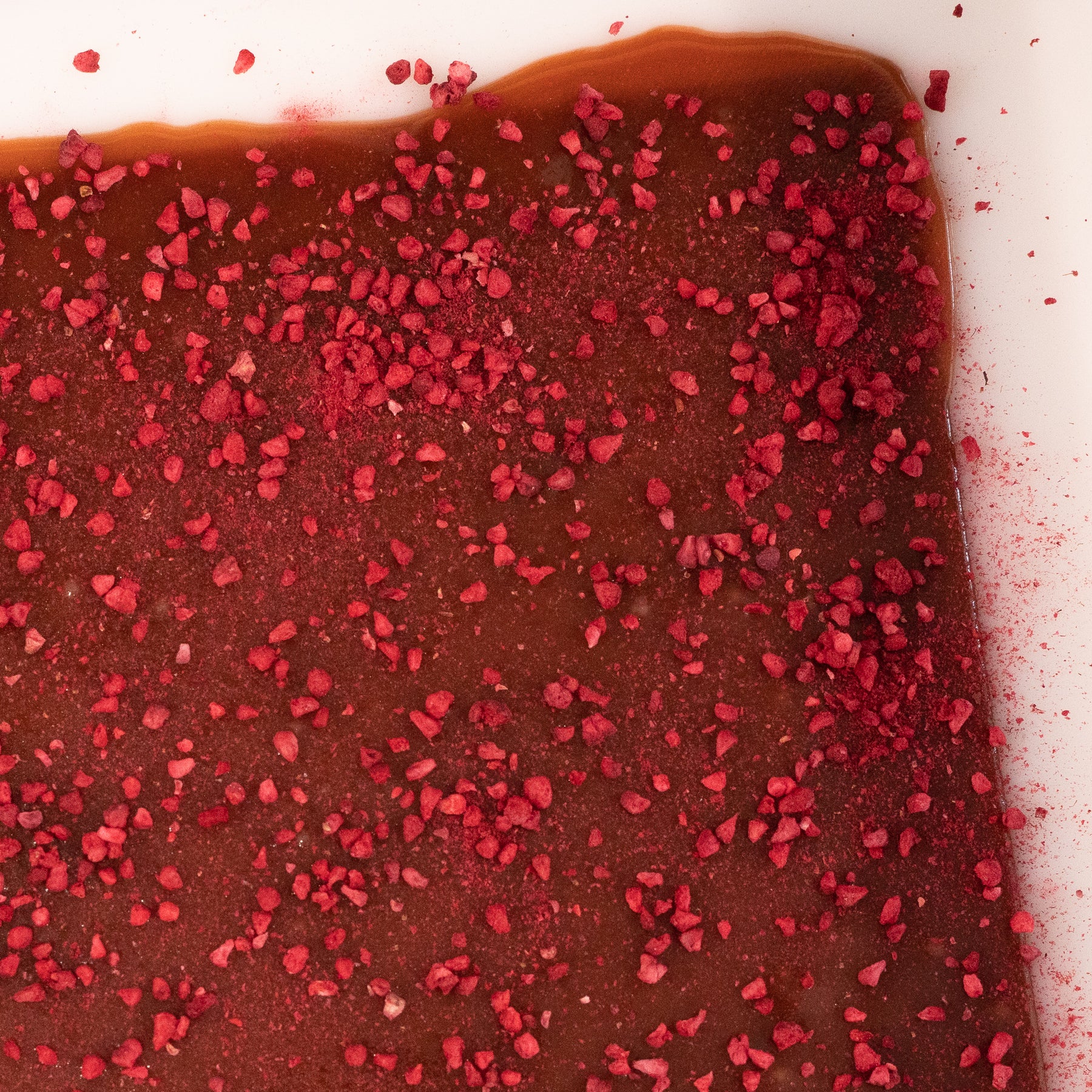 HALLON & SALT LAKRITS - En oemotståndlig kombo av salt lakritskola, bitar av rosa hallon och ett lager frisk hallonkola. En barnsligt god favorit som lämnar dig med en smula hallon och ett stort leende på läpparna.