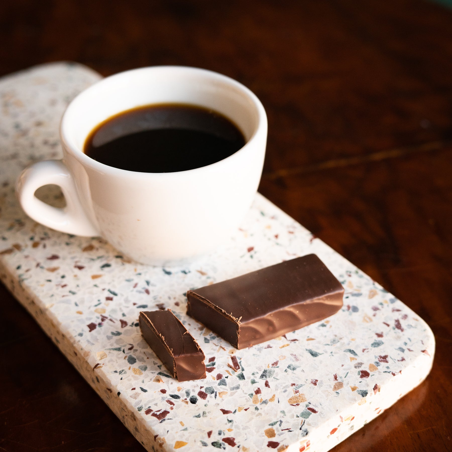 En större bit kola i choklad där vår kärlek till hantverket får lysa igenom, inslagen för hand och toppad med lyxiga godsaker. Dela med någon du har kär, eller smyg upp ur fickan och ta en tugga rakt av.