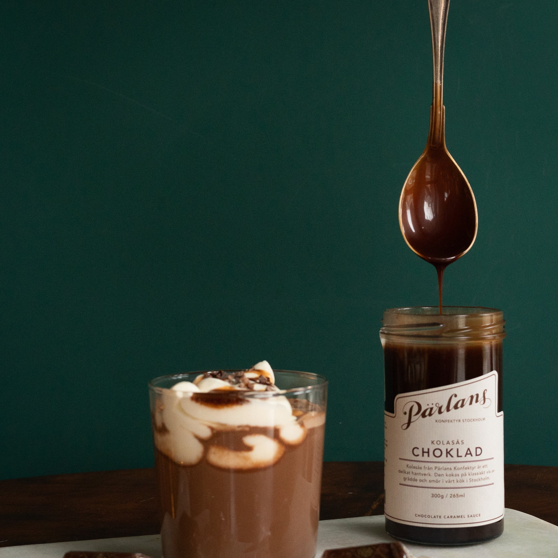 Vår kolasås är vansinnigt god till glass, gärna varm, men också delikat ringlad över våfflor, frukt och bär, och utmärkt som fyllning i bakverk. Prova dig fram, kanske är den alldeles magisk till just din favoritdessert. Eller, för all del, varför inte skopa in den i munnen precis som den är! CHOKLAD - Generös, varm och mustig. Ett hantverk från Pärlans Konfektyr i Stockholm.