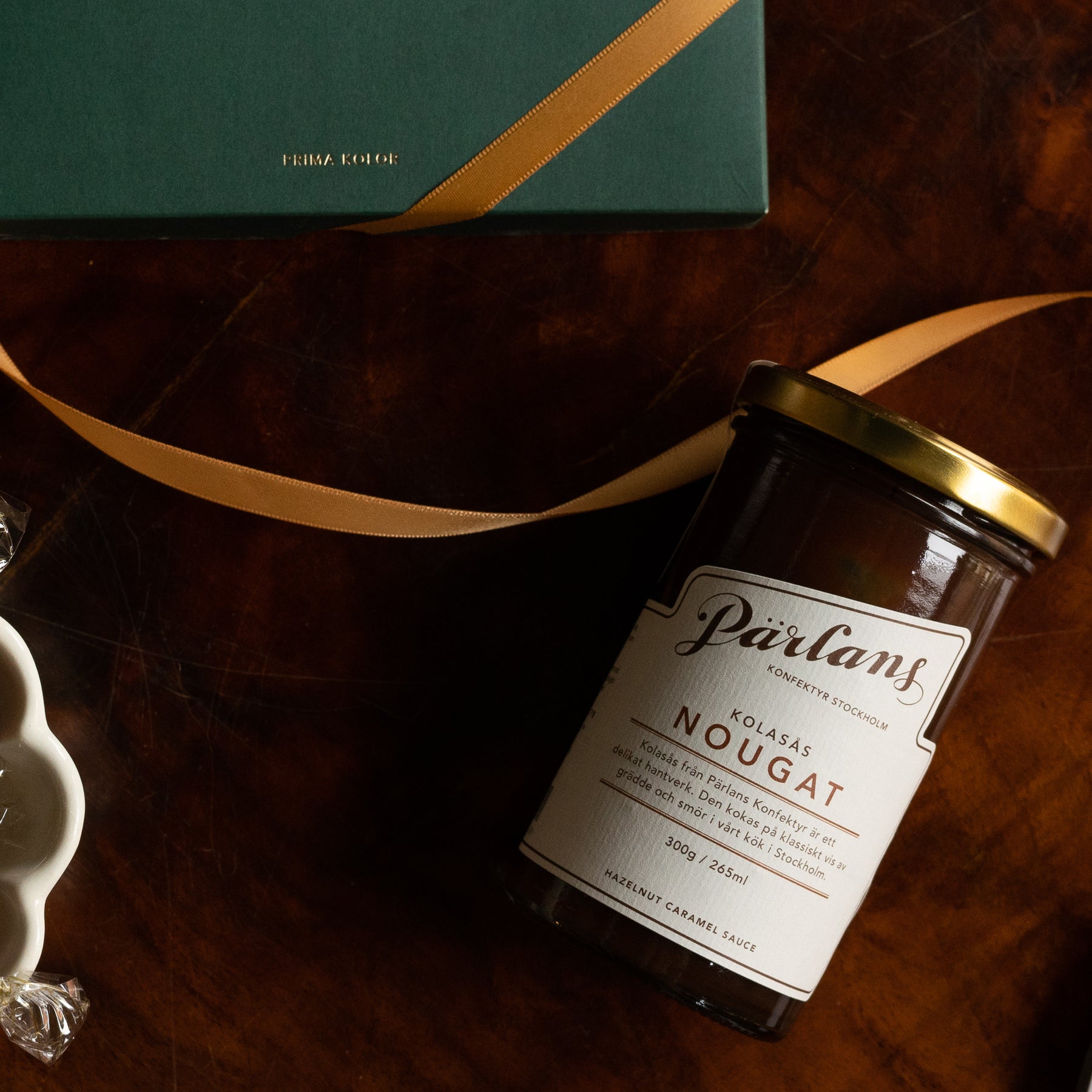 Vår kolasås är vansinnigt god till glass, gärna varm, men också delikat ringlad över våfflor, frukt och bär, och utmärkt som fyllning i bakverk. Eller, för all del, varför inte skopa in den i munnen precis som den är! NOUGAT - en klassiker med toner av rostade hasselnötter, choklad och lätt sälta. Ett hantverk från Pärlans Konfektyr i Stockholm.