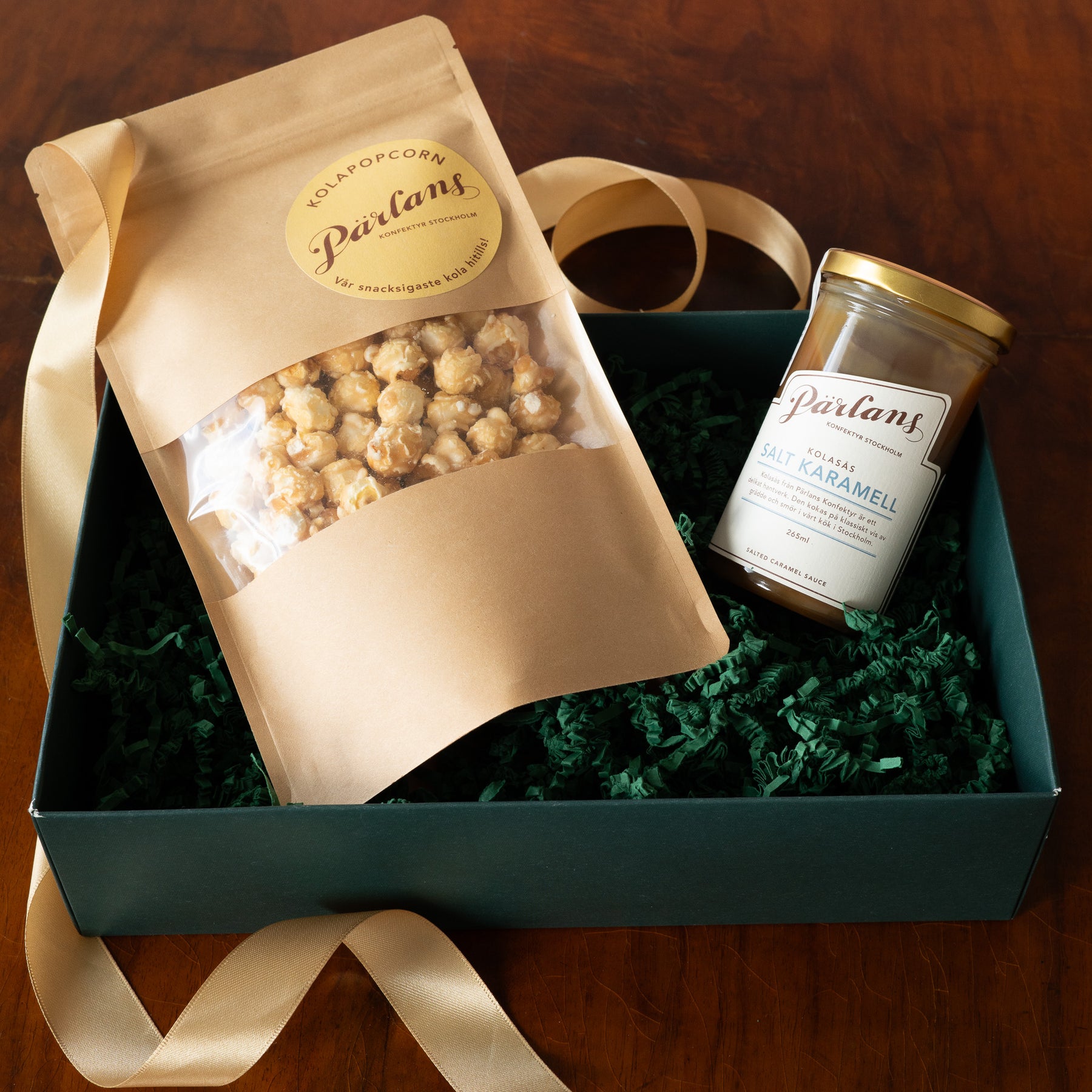 Ett perfekt festkit med krispiga kolapopcorn och vår absolut populäraste kolasås - allt som saknas är glassen. Välj mellan att få det packat i en lyxig presentlåda knuten med satinband, en mjuk dustbag eller bara produkterna precis som de är.